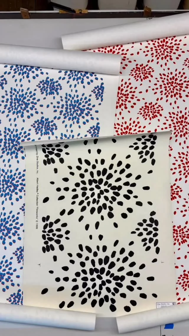 Our Chinese pattern was used by Sister Parish in the bedroom of Mrs. Thomas Jefferson Coolidge, as seen in the book “The Finest Rooms by America’s Greatest Decorators” by Katharine Tweed. We also designed, developed and supplied many of the patterns that became closely associated with Sister and Albert, including Astor Stripe and the iconic Tree of Life that was used in Mrs. Astor’s famous “Money Room”. Please visit our Designs page to see many of the patterns created with Albert Hadley during our years of collaboration. We are proud to have an extensive collection of Mr. Hadley’s designs and his pattern archive.
